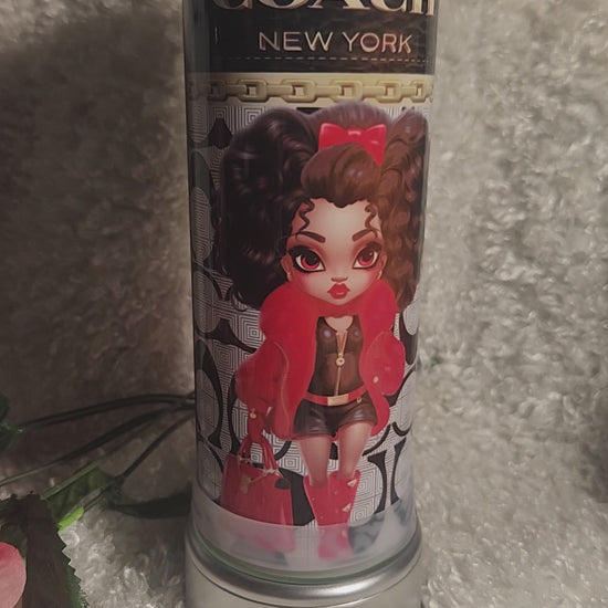 20oz Sublimation tumbler and comes with gift box, straw cleaner, metal straw and rubber grip bottom.
