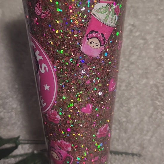 Elevate your daily experience with our Glitter Snowglobe 24oz. This 24oz snowglobe is designed in a beautiful pink color, with sparkling glitter to add a touch of luxury to your drink. Perfect for any coffee lover, this snowglobe is the perfect blend of style and functionality.