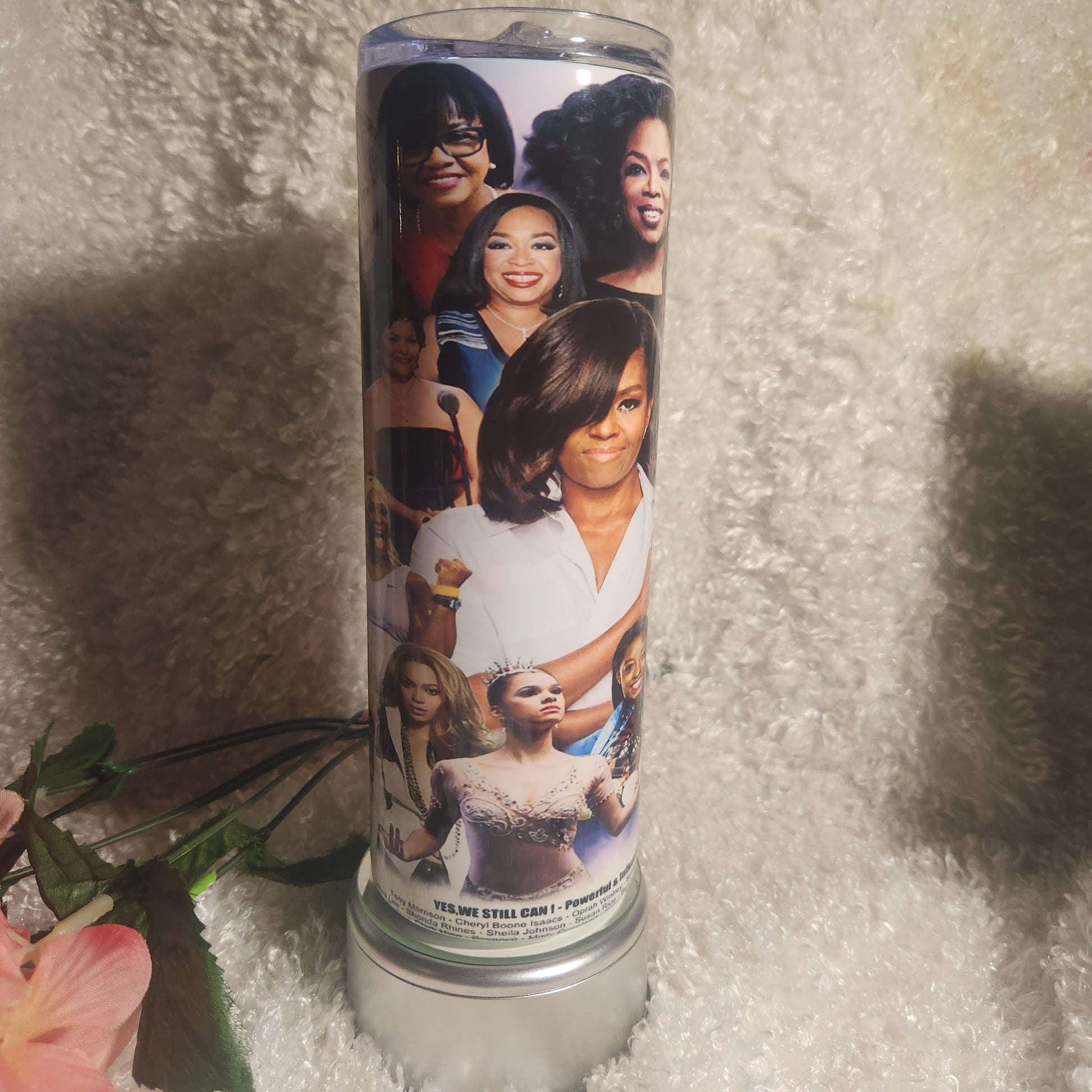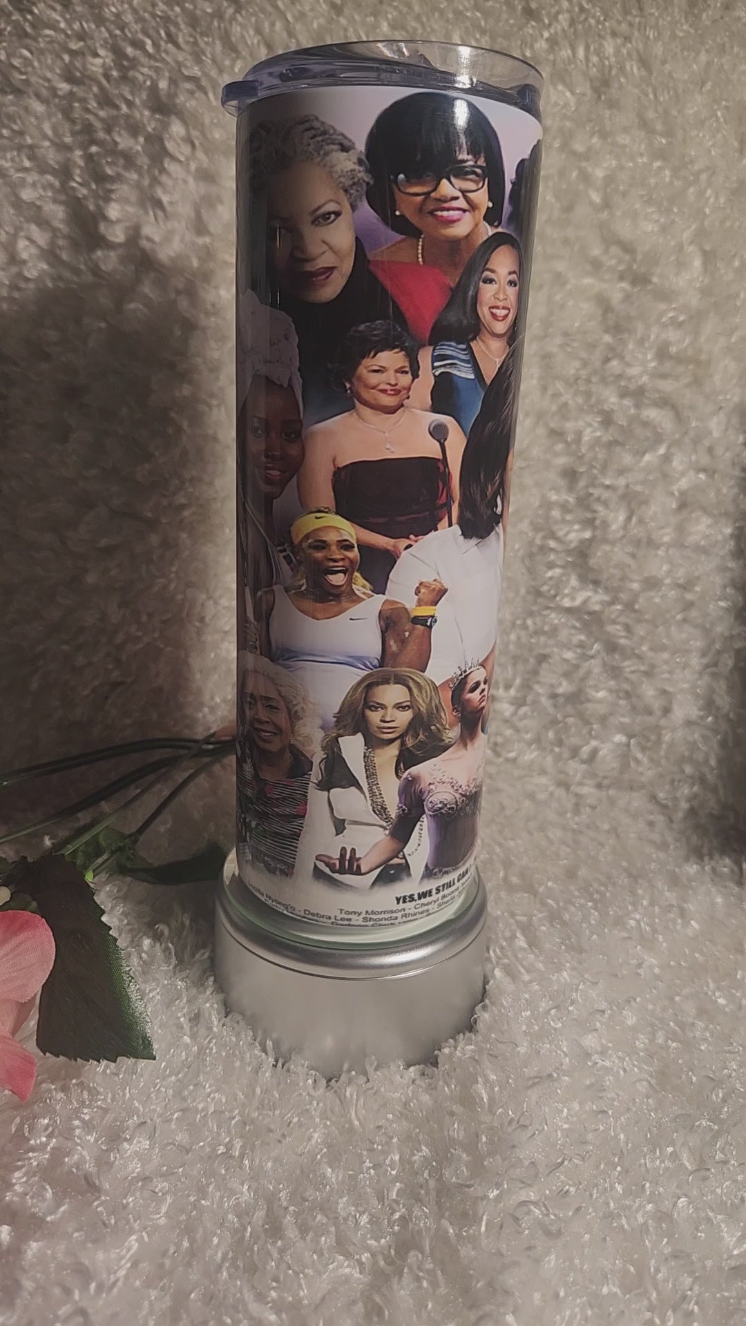 Comes with 20oz tumbler, metal straw, brush cleaner, non-slip rubber bottom, gift box w/bow